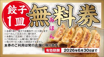 ✅内 容:お食事券3500円分、餃子1皿無料券1枚